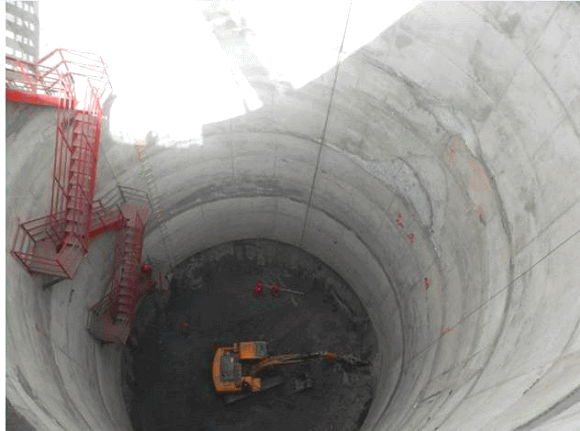 廣州中煤江南基礎工程公司特種分公司承建的西氣東輸三線西段寧夏中衛(wèi)黃河盾構(gòu)隧道穿越工程始發(fā)井工程于2013年4月 5 日順利完成最后一道內(nèi)襯墻混凝土澆筑,標志著該項目始發(fā)井工程圓滿完成施工任務。該項目位于寧夏回族自治區(qū)中衛(wèi)市沙坡頭區(qū)迎水橋鎮(zhèn)孟家灣村,總工期190天。主要工作量是施工1000mm厚地下連續(xù)墻環(huán)撐支護加內(nèi)襯墻始發(fā)井。始發(fā)井內(nèi)徑14m,外周長50.24米,共劃分為十幅墻段,其中9幅為轉(zhuǎn)角墻,內(nèi)折角為162°、169°,成墻深度45.6米,開挖深度 37.75 米,內(nèi)襯墻施工采用滿堂腳手架支撐方法。
