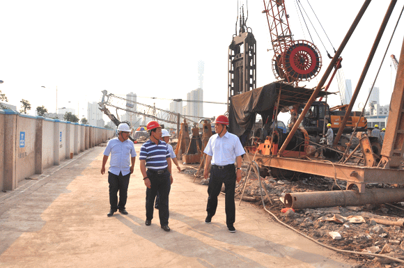 10月10日,穆勇局長到廣州市珠江南岸巖土分公司承接施工的寶鋼大廈基坑支護(hù)項(xiàng)目開展調(diào)研。該項(xiàng)目投資方為寶鋼集團(tuán),總包方為中建八局,巖土分公司負(fù)責(zé)該項(xiàng)目的地下連續(xù)墻基坑支護(hù)工程施工,基坑周長571米,造價(jià)2000余萬元。
