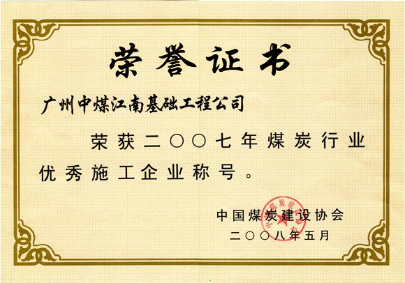 中國煤炭建設協(xié)會煤炭行業(yè)優(yōu)秀施工企業(yè)