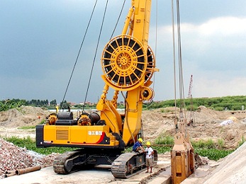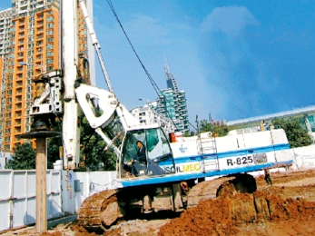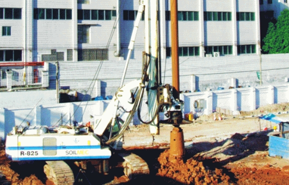 意大利土力公司的R-825型旋挖鉆機(jī),R是動力頭,8是主機(jī)重量等級,工作重量85噸;25-動力鉆頭最大扭矩為250千牛米。鉆進(jìn)能力:在干式或配泥漿施工中孔徑2.5米、孔深77米。主要技術(shù)參數(shù):底盤配D7F底盤;履帶寬900mm;車體寬(履帶外緣距)3400-4600mm;最大牽引力715千牛;額定功率273千瓦(2000轉(zhuǎn)/分);最大功率300千瓦(2100轉(zhuǎn)/分)。