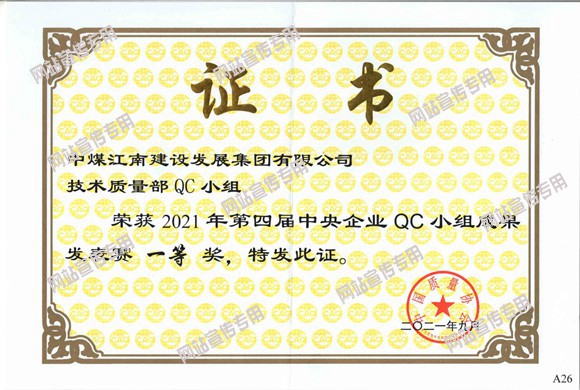 2021年第四屆中央企業(yè)QC小組成果發(fā)表一等獎(jiǎng)