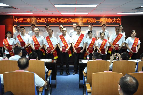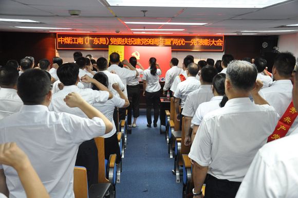 6月27日,為慶祝中國(guó)共產(chǎn)黨成立98周年,推進(jìn)“不忘初心、牢記使命”主題教育,中煤江南建設(shè)發(fā)展有限公司(廣東煤炭地質(zhì)局)黨委在公司(局)本部召開(kāi)慶祝中國(guó)共產(chǎn)黨員成立98周年暨“兩優(yōu)一先”表彰大會(huì)。公司代總經(jīng)理、黨委副書(shū)記武岳彪主持,黨委書(shū)記、董事長(zhǎng)張德高作紀(jì)念講話,并結(jié)合“不忘初心、牢記使命”主題教育給參會(huì)人員講黨課,公司(局)領(lǐng)導(dǎo)班子全體成員出席會(huì)議。