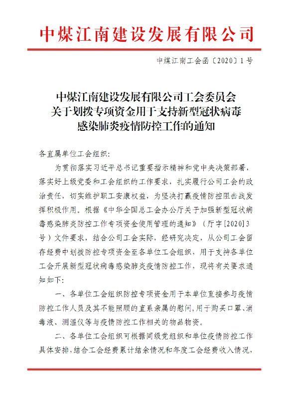 2月10日,為扎實履行公司工會的政治責任,切實維護職工安康權益,為把“娘家人”的關心關愛及時送達廣大職工,助力復工復產。公司(局)工會從工會現(xiàn)有留存經(jīng)費中劃撥7萬余元防控專項資金至各單位工會組織,用于購買口罩、消毒液、測溫儀等與疫情防控工作相關的物品物資,支持各單位參與疫情防控的職工及其不能照顧的直系親屬,為公司防控疫情傾力做好服務保障工作。