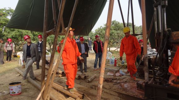 近日,廣東局勘查院負責(zé)實施的廣東省茂名盆地頁巖氣資源潛力研究與評價項目參數(shù)井正式開工,局長助理、地質(zhì)礦業(yè)(國際)處處長張福強及局副總工程師、勘查院院長張德高等蒞臨現(xiàn)場指導(dǎo)。
