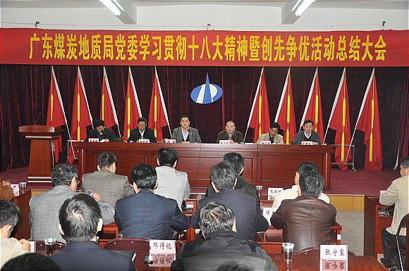 黨委書記楊文剛作創(chuàng)先爭(zhēng)優(yōu)活動(dòng)總結(jié)講話,副書記、紀(jì)委書記唐朝彬傳達(dá)學(xué)習(xí)了黨的十八大精神,201勘探隊(duì)等三個(gè)基層黨組織進(jìn)行了創(chuàng)先爭(zhēng)優(yōu)活動(dòng)經(jīng)驗(yàn)交流發(fā)言。副局長(zhǎng)鄭梅深、謝達(dá)平,總會(huì)計(jì)師肖章大,機(jī)關(guān)全體工作人員、所屬各單位黨政主要領(lǐng)導(dǎo)和嘉禾基地離退休職工黨員代表共70多人參加了會(huì)議。廣東局黨委召開學(xué)習(xí)宣傳貫徹黨的十八大精神暨創(chuàng)先爭(zhēng)優(yōu)活動(dòng)總結(jié)大會(huì)12月27日,廣東局黨委召開學(xué)習(xí)宣傳貫徹黨的十八大精神暨創(chuàng)先爭(zhēng)優(yōu)活動(dòng)總結(jié)大會(huì)。大會(huì)上,局長(zhǎng)穆勇要求以黨的十八大精神為指導(dǎo),切實(shí)改進(jìn)會(huì)風(fēng)文風(fēng),實(shí)干興邦。